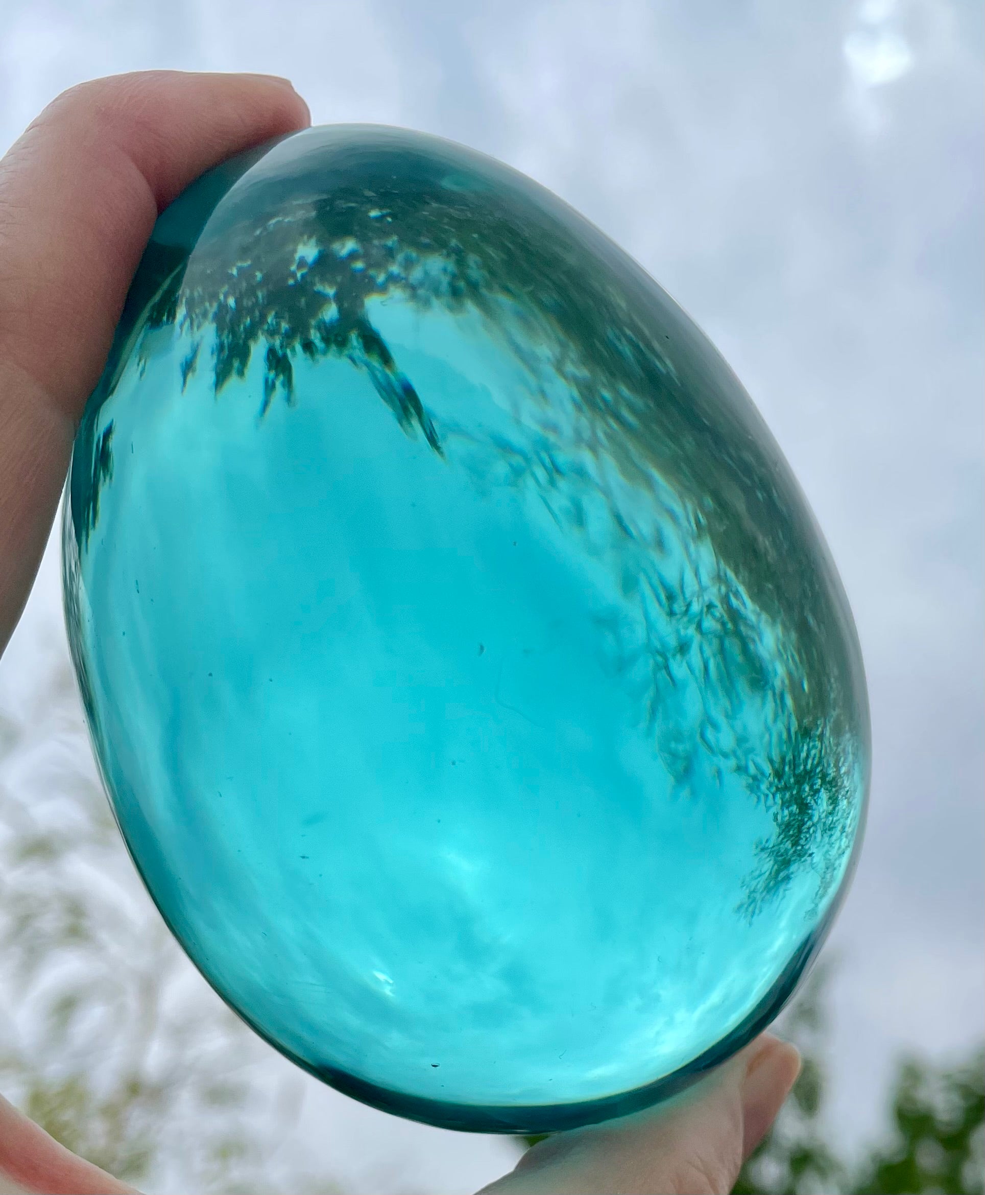 La condensation vibratoire émise par l’onde de forme de cet œuf ANDARA aqua (bleu/vert suivant la luminosité) est porteur d’une vibration stellaire.